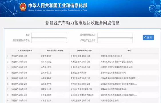 2018年2月工信部、科技部、環(huán)保部、交通運輸部、商務部、質檢總局、能源局等七部委聯(lián)合發(fā)布《新能源汽車動力蓄電池回收利用管理暫行辦法》(以下簡稱《辦法》),該《辦法》已從今年8月1日開始實施。按照《新能源汽車動力蓄電池回收利用管理暫行辦法》《新能源汽車動力蓄電池回收利用溯源管理暫行規(guī)定》,工業(yè)和信息化部將每季度更新一次新能源汽車動力蓄電池回收服務網(wǎng)點的信息情況。而此次回收服務網(wǎng)點信息公布也標志著中國新能源汽車動力電池回收利用真正進入了執(zhí)行實施階段。